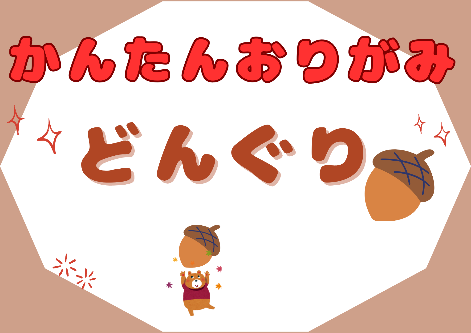 1つ目は、1枚の折り紙でかんたんに折れるどんぐりです。